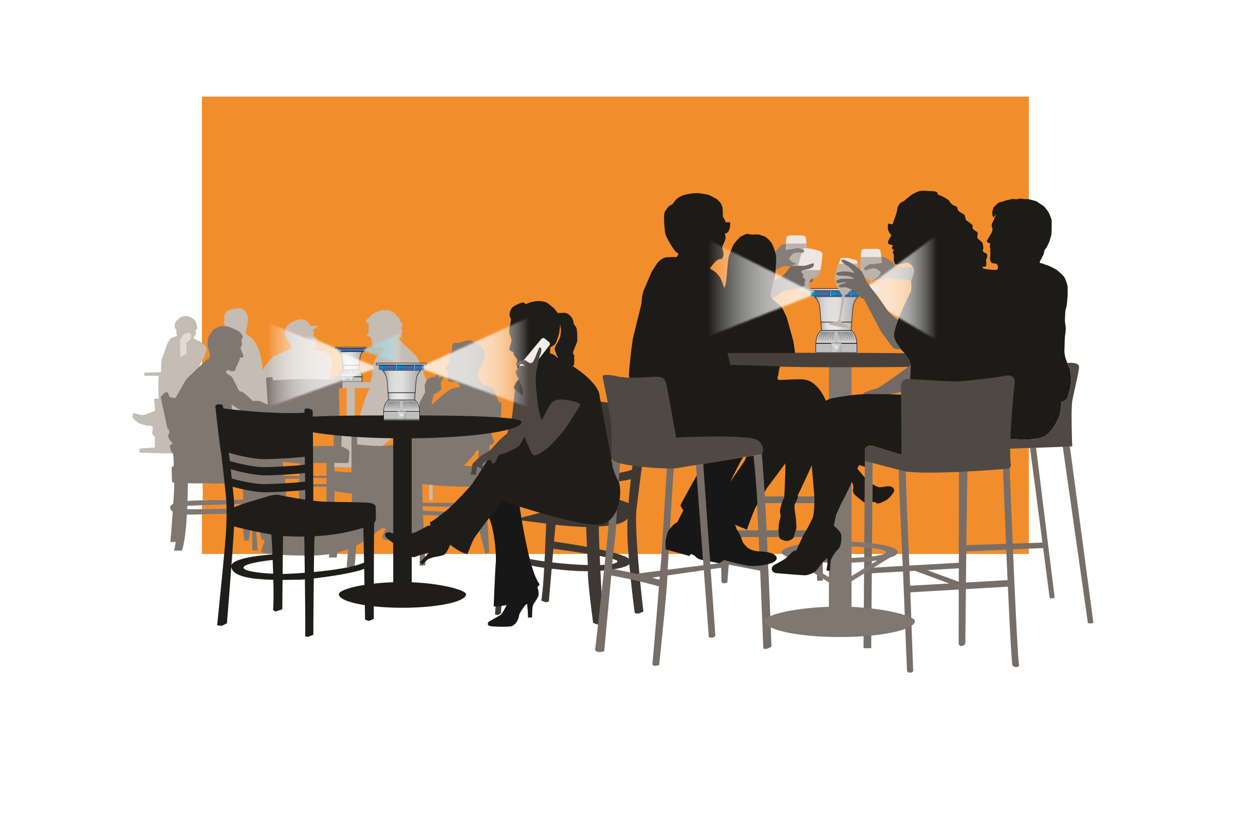 TableBreeze is engineered to provide 360 degrees of air flow from the center of a table onto the face, neck, chest and arm areas of seated individuals. This direct air flow to the most thermally sensitive body parts produces a measurable cooling effect and thermal satisfaction.